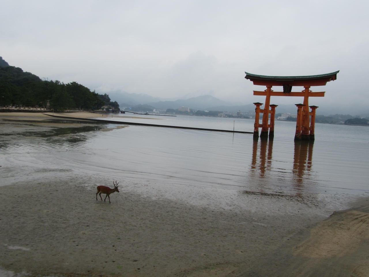 宮島と言ったら大鳥居と一番に頭に浮かぶほど有名な大鳥居ですが潮の満ち引き加減によって鳥居の側まで歩いて行けるか、遠目で見るかが決まります。