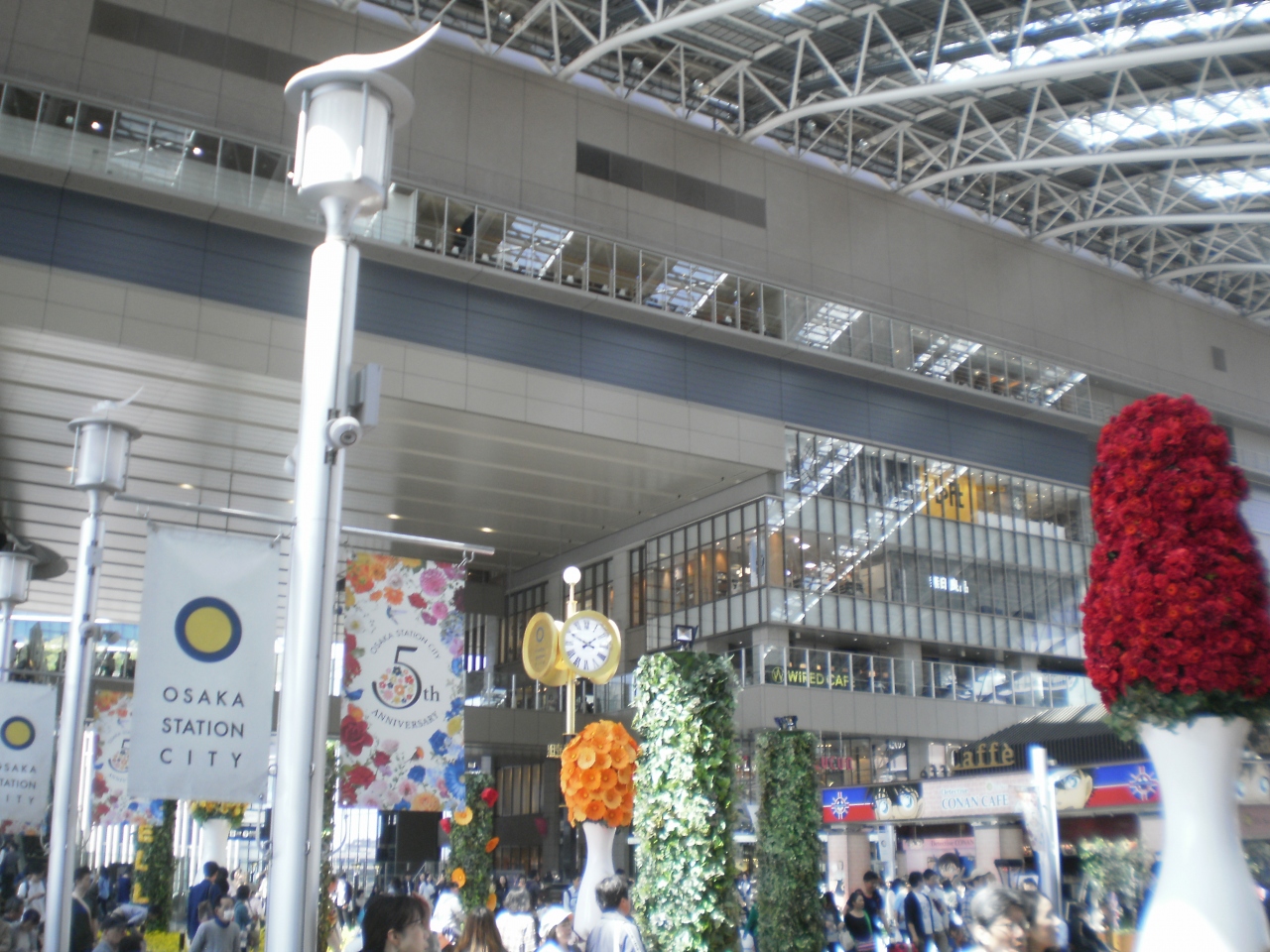 ゴールデンウィークにJR大阪駅周辺にある複合商業施設の大阪ステーションシティに行きました。 大阪駅のプラットフォームを囲むように巨大なドームに圧倒されます。 時の広場はちょうどプラットフォームの上にあって、発着する列車や乗降する乗客の様子が眺められて面白かったです。訪れたときは、大河ドラマの真田丸のイベントをやっていて激込でした。