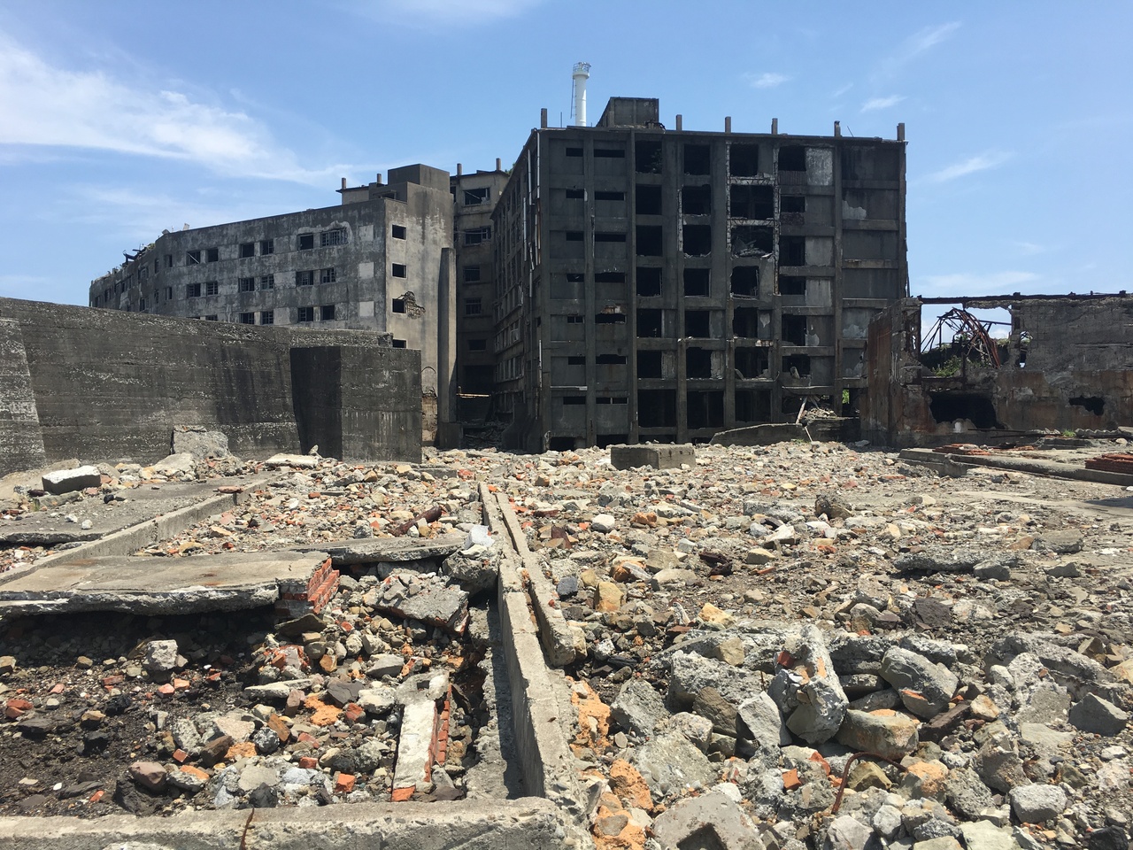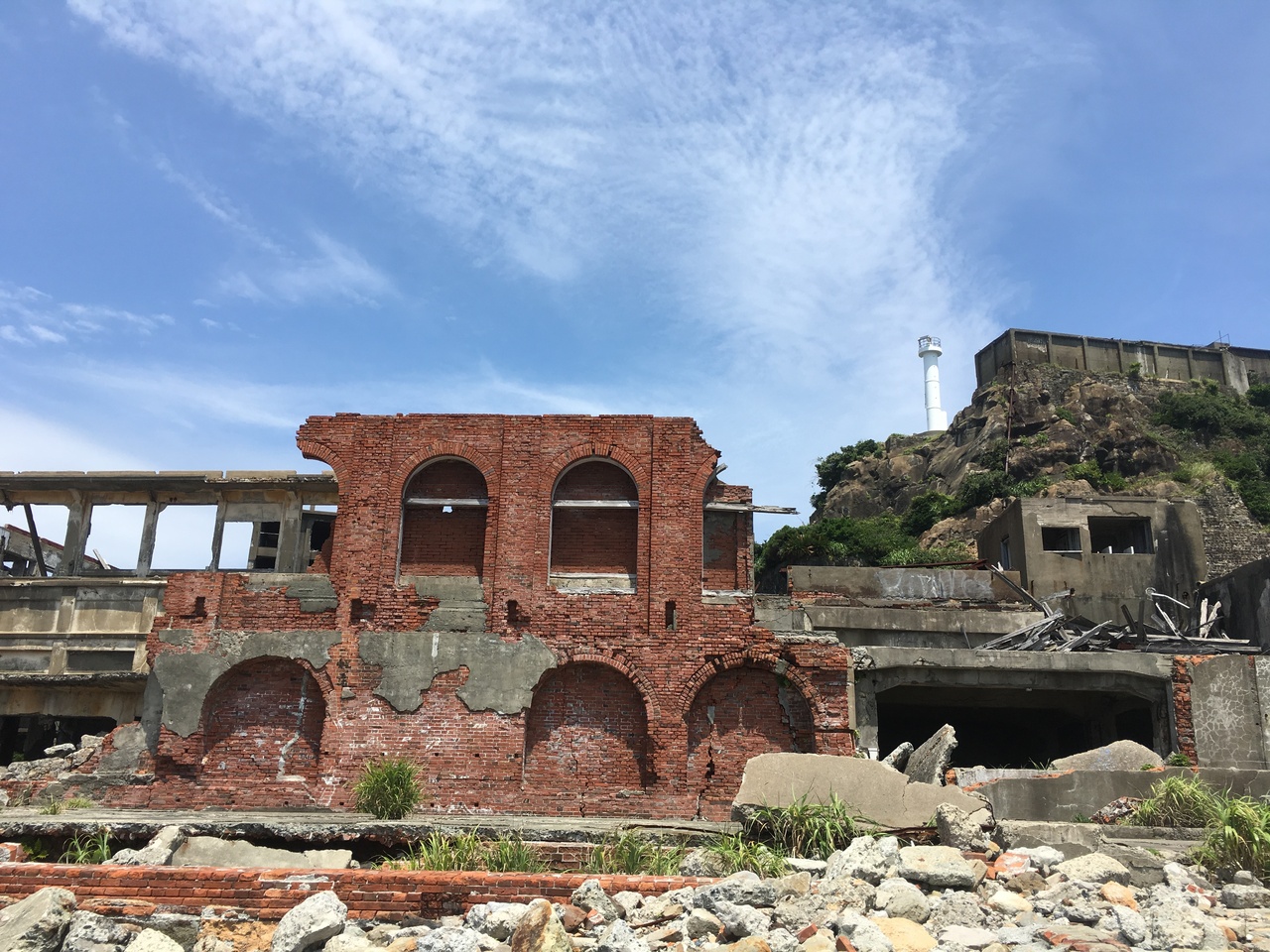 いよいよ待望の上陸!三ヶ所の見学ポイントがあり、そこではガイドの方が案内をしてくれました。当時の最先端の技術が詰め込まれた建築物と5000人もの人が裕福な生活をしていたこの島の荒れ果てた姿はなんとも言えないものがありました。