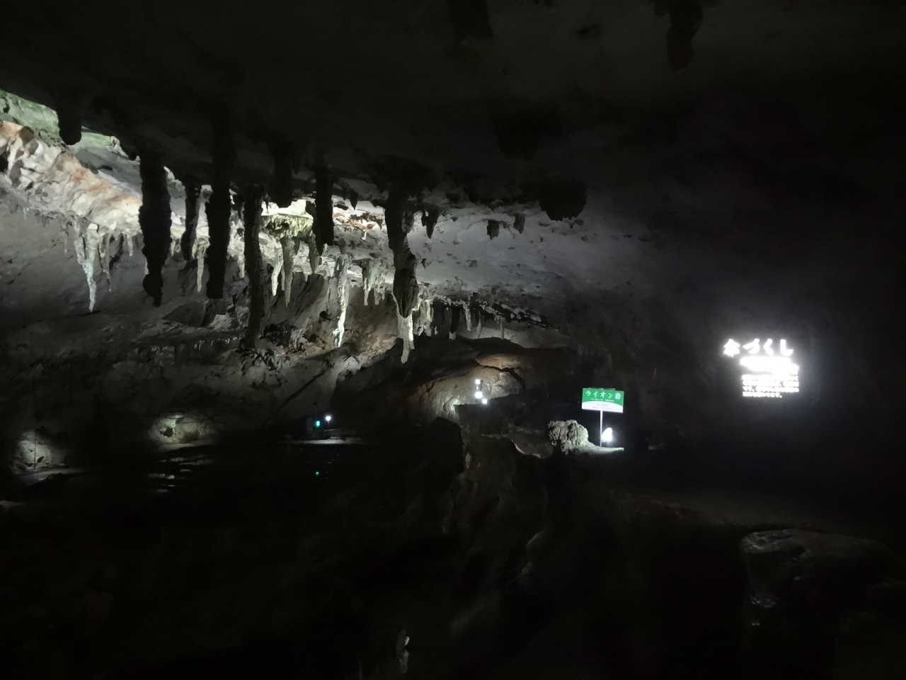 本洞を進んで行って少し広いところから上に少し登っていく道の天井にある奇岩でございますが、天井から無数にしたたりのびてる様子はが傘って言うよりよりツララって感じでした。