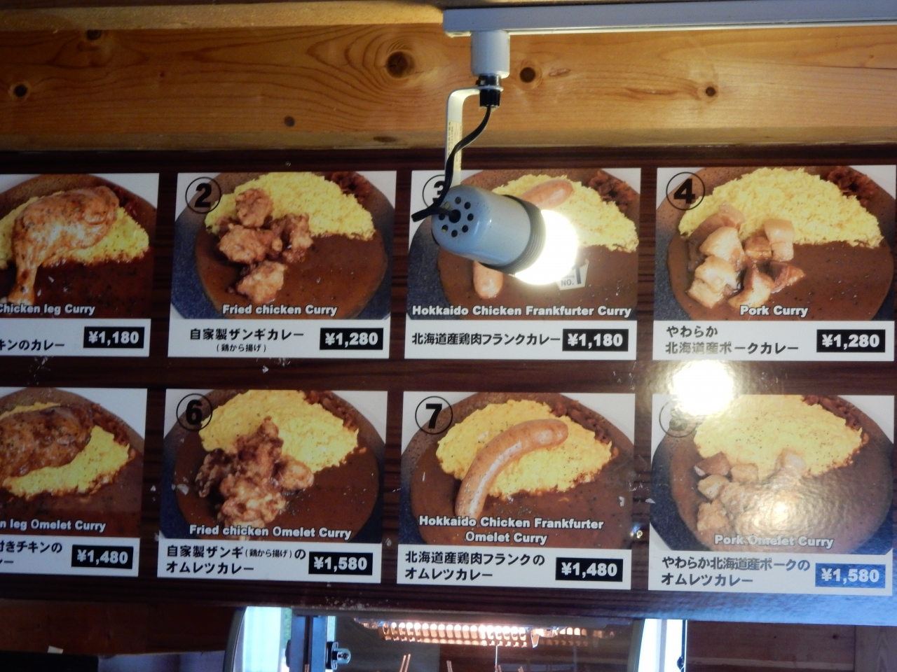 富良野カレーと、ザンギやじゃがバター、コーヒーや牛乳のような軽食を提供しています。
