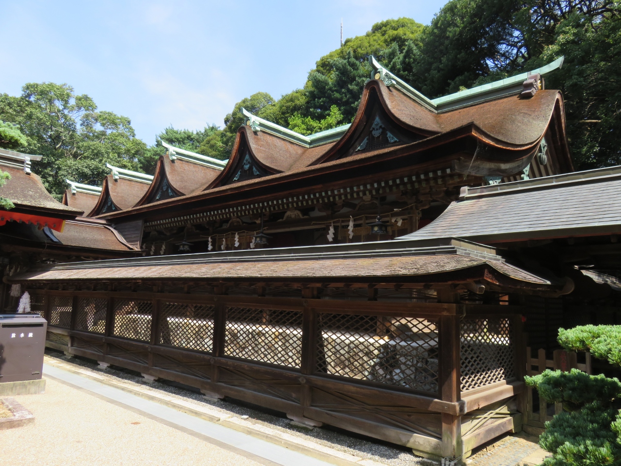 この神社のことを4トラベルの仲間から尋ねられたが、なんと35年前に行っただけで、この国宝の神社のことを忘れかけていた!で、今日、慌てて、訪ねたが、いや、流石国宝だけのことはあると納得。小ぶりながら凛とした美しさが漂う。室町時代初期、1370年に大内弘世が創建したそうだ。その後、拝殿は、毛利元就が1539年に寄進したそうだ。萩に閉じ込められる前に、この地に創建した拝殿があったとは認識していなかった。