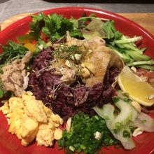 パクチーをつかったチキンライスのプレートを頼みました。知人が頼んだサラダのプレートはお花がのっていてとてもおしゃれでした。