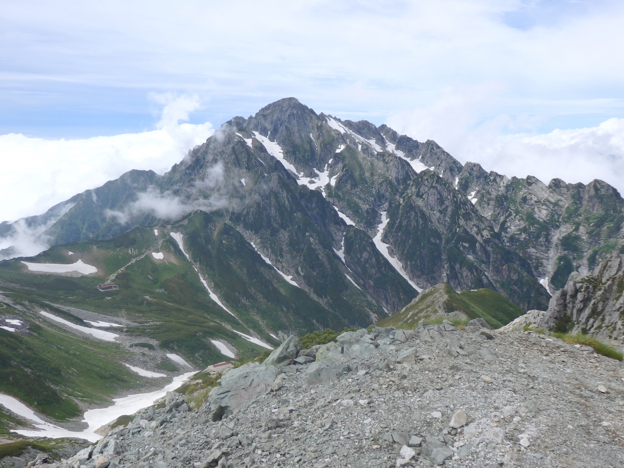 最初はガレ場が続き、浮き石や落石に注意が必要ですが、前劔あたりからは一瞬たりとも油断できない危険な場所になりますから精神的に疲れました。