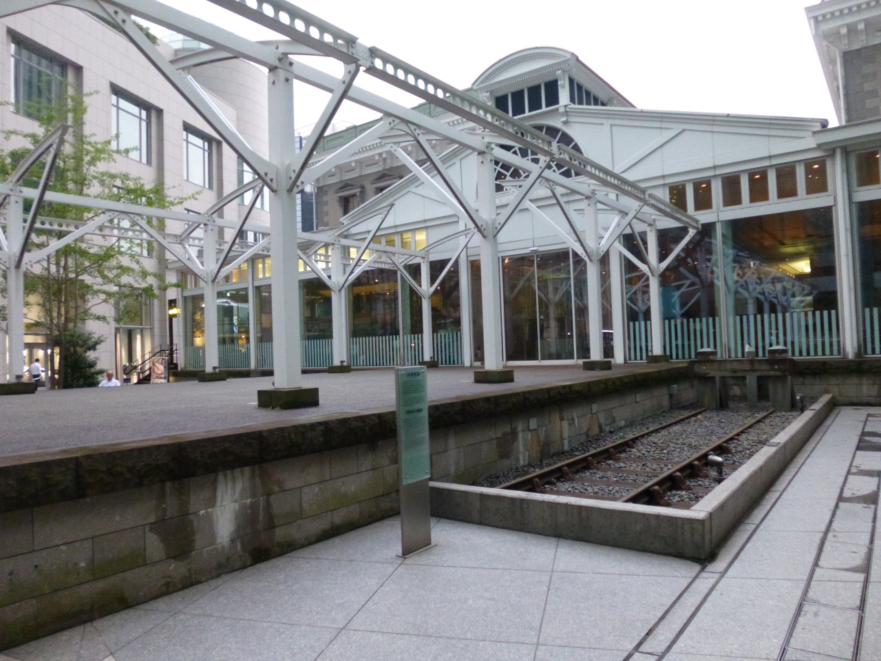 汐留シオサイトの一画に僅か数十メートルだけ敷かれた鉄道のレールがあります。