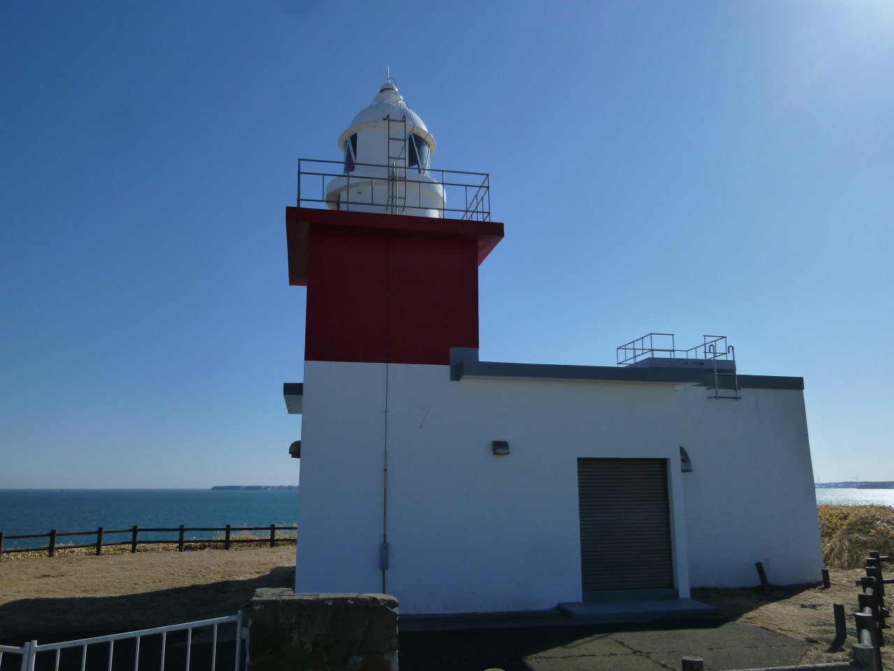 近くで見ると白と赤に塗り分けられた小さな灯台なのですが丘の上に有るせいか随分高い場所でここから周りの眺望は抜群です。