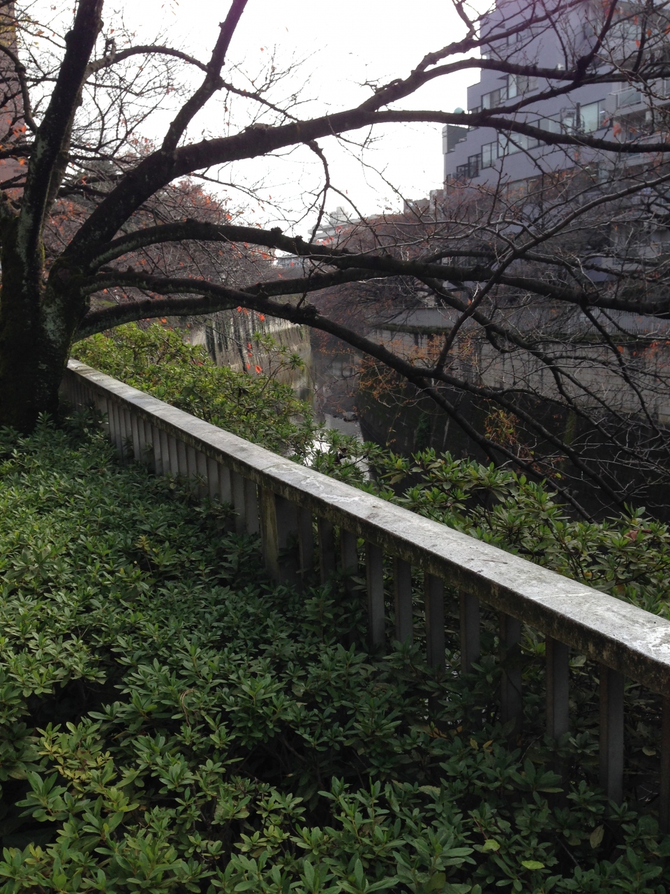 神田川に覆いかぶさるように桜の木があり、