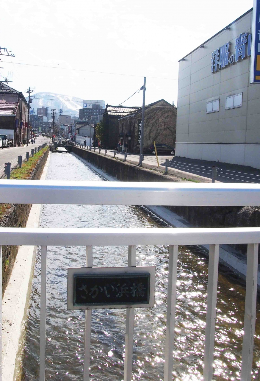 小樽運河と妙見川の合流地点小樽運河の始点に架かる小さな橋が堺浜橋です。堺浜橋の下を流れる妙見川は川幅は狭いですが流れも急で見ていても飽きないぐらいの水量があります。一年に一度、定期的に清掃されている様で川底も綺麗です。