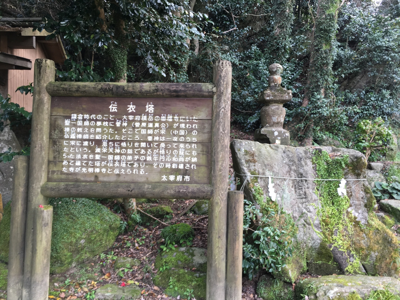 大宰府天満宮をお参りした後、駅に戻るのに同じ道だと面白くないので、一本外れた道を歩いていると偶然見つけました。菅原公が禅の修行を終えて中国から戻ってきた際、お弟子さんが法衣を譲り受けた際、こちらに奉納したとのことです。正直、小さな石塔がある程度の見かけだったので、そんなにちゃんとしたいわれのあるものには見えませんでした。。。