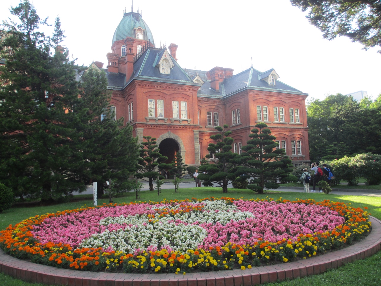 時計台、テレビ塔と並ぶ札幌の観光スポットです。赤レンガ造りの建物で、1888年から80年間、北海道の行政の中心として活躍しました。これまで何回か庁舎内をボランティアさんと一緒に見学しているので、今回は素通りしようと思いましたが、近くを通ったのでつい入ってしまいました。庁舎内には当時使用されていた執務室や会議室が見学でき、木製の階段一つをとっても歴史を感じることができます。北方領土の資料も展示されていて、領土問題に関しても学ぶことができます。庁舎前の花壇にはきれいに整備された花々が植えられ、散策疲れを癒してくれました。
