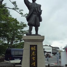 国宝松江城を築城した戦国大名です。穏やかな人物で、「仏の茂助」と呼ばれていたそうです。松江城大手前に、銅像が建っていました。松江城のほうを向いて、見守っているように見えました。2013年にできた、新しい銅像です。