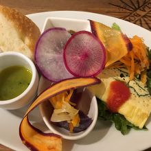 彩り豊かに盛り付けられた野菜はみずみずしくおいしいです