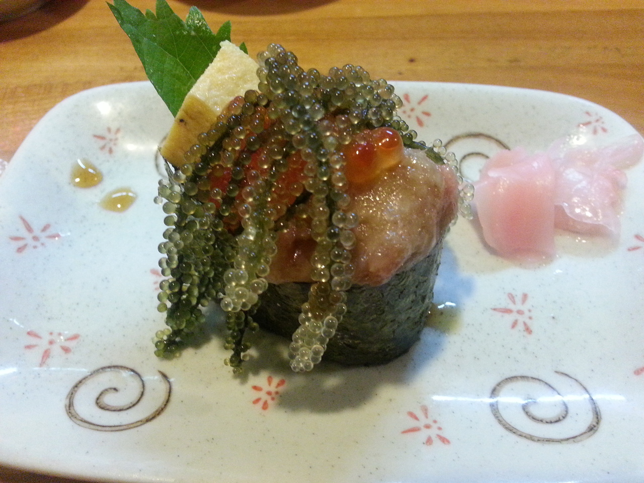 予約しようとしたが生憎空席まち。当日、空きがでたと連絡があり、喜んで駆けつけました。やはりマグロ寿司盛り合わせ980円は安くて美味しい! マグロの味がよくわかります。他に石垣牛の握り、島らっきょう天ぷら、マグロ海ブドウ軍艦、マグロはらみぽん酢、マグロレバ刺風とほぼマグロのオンパレード。安くて美味しい。予約必須ではないでしょうか。