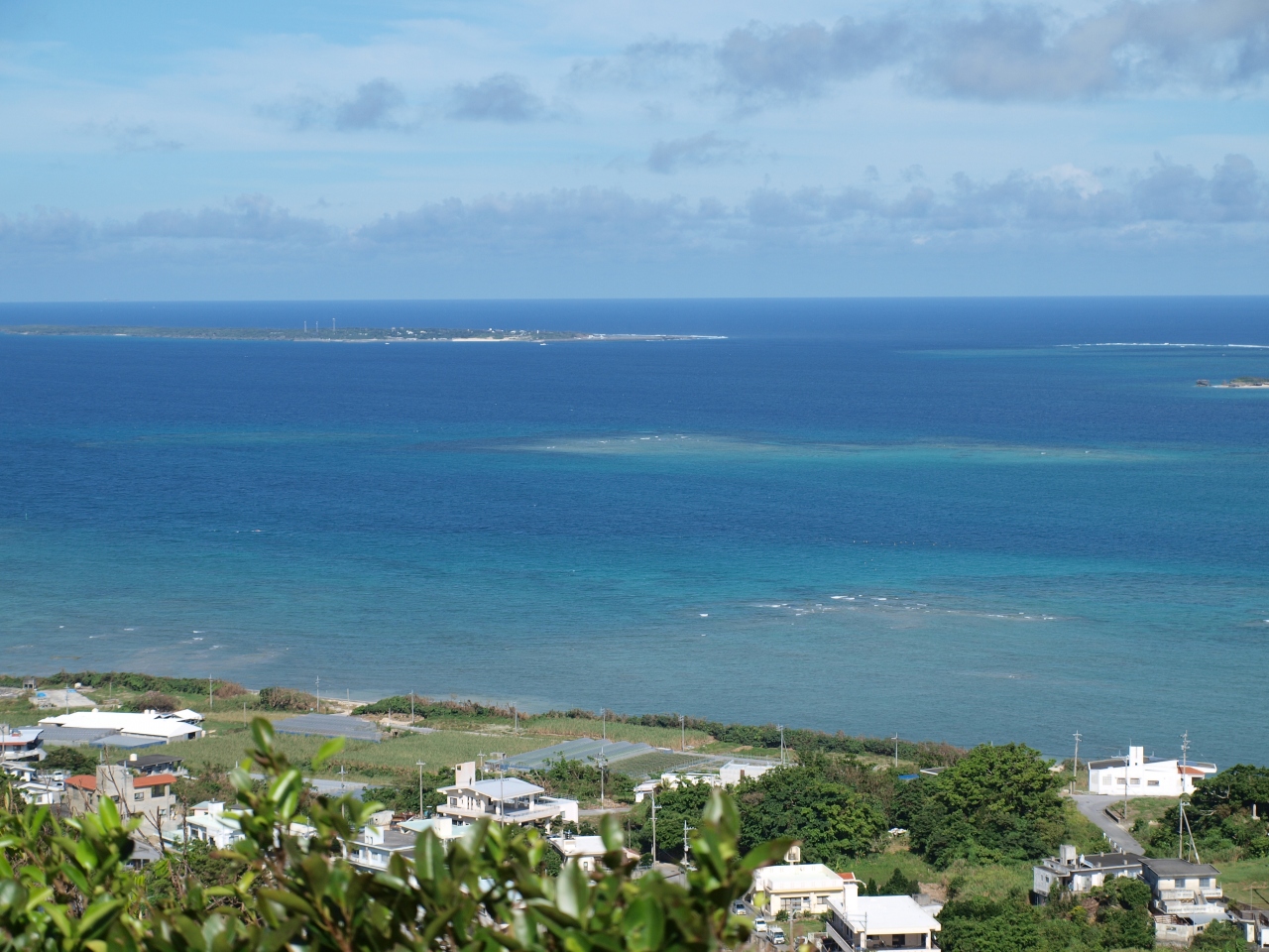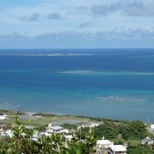 有名な海カフェの一つで、店の中もテラスもお客さんで一杯でした。店の中を通ってテラスに出ると、目に飛び込んでくるのは、高台から眺める青い空青い海の絶景です。テラスでのんびり冷たいものをいただきながら、ついつい長居をしてしまいました。庭からも絶景が楽しめます。