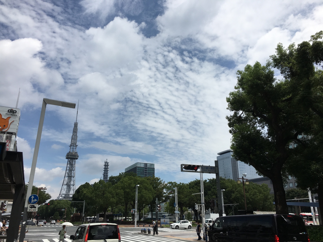 名古屋の中心、栄エリアの南北を走る大通り。久屋大通駅から矢場町駅まで二駅分の長さがあります。いつも思うのですが、テレビ塔があって雰囲気が札幌の大通り公園に似ています。街中、さらに道路の真ん中にこういう憩いの場があるのはいいですね。