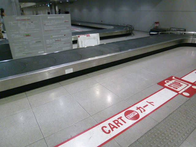 ここは関西空港第一ターミナルです。関西空港はLCCの第二ターミナルができてから第一と第二を分けて呼ぶようになりました。今までのJRと南海が発着するターミナルが第一です。今回は関西空港第一に到着ですが、こちらでは広い空港内移動はウイングシャトルでの移動にとなり楽ちんです。また海外にない利点は荷物を受け取る場合、荷物を取りやすいようにコンベヤーの近くに入らないように線を引いています、良いことですね。また利用します。