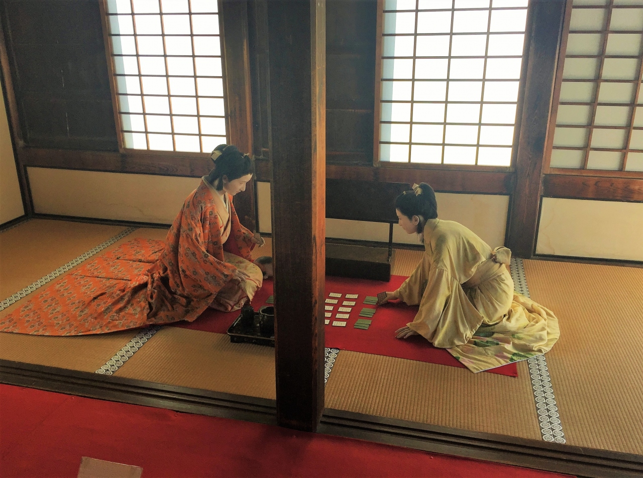 化粧櫓の内部は広く、百人一首で遊ぶ千姫が居ます。