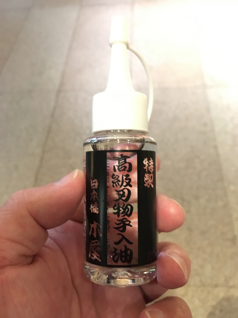 刃物の名門のお店木屋さん。今ではいろんな百貨店にもテナントで入っていますが、やはり買うなら本店がいいでしょう。値段は高いものもやはり多いのですが、ここで1番値段が安く、しかもお買い得の商品はお手入れ用油。これだけの容量で300円というのは老舗のサービスプライスだとおもいます。