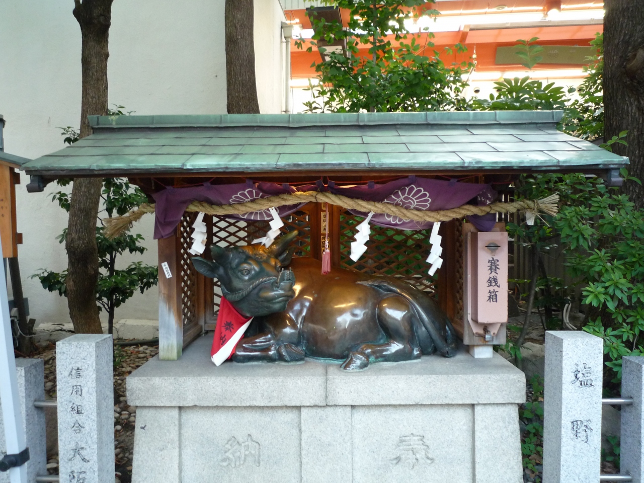 通称はお初天神(正式には露天神社)にある石で作らた牛です。