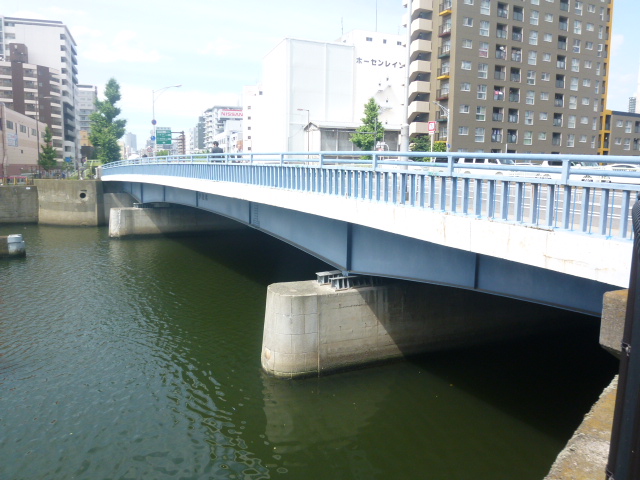 今日は西道頓堀川を西へ散策し様々な橋を楽しんでいます。もう数ヶ所の橋を観てここ「汐見橋」に来ています。この付近の西道頓堀沿岸は開発は1698年ごろから本格的に始まり橋が架けられ、そのひとつが汐見橋と言われています。土佐や薩摩からの荷上げ場所となっていて工業が盛んだったようです。現在は片側4車線の幅広い道路(新なにわ筋)の架け橋となっていて交通の大動脈となっています。また南海汐見橋線や地下鉄線が付近も運行しててマンションなどの住宅地を多く見られます。