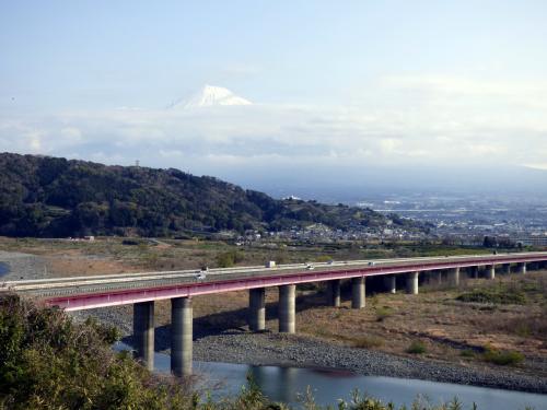 富士川のすぐ近くの高台にあるの大きな施設で、晴れていれば富士川にかかる赤くるられた東名高速の橋越しに、富士山裾野まで綺麗に眺められます。
