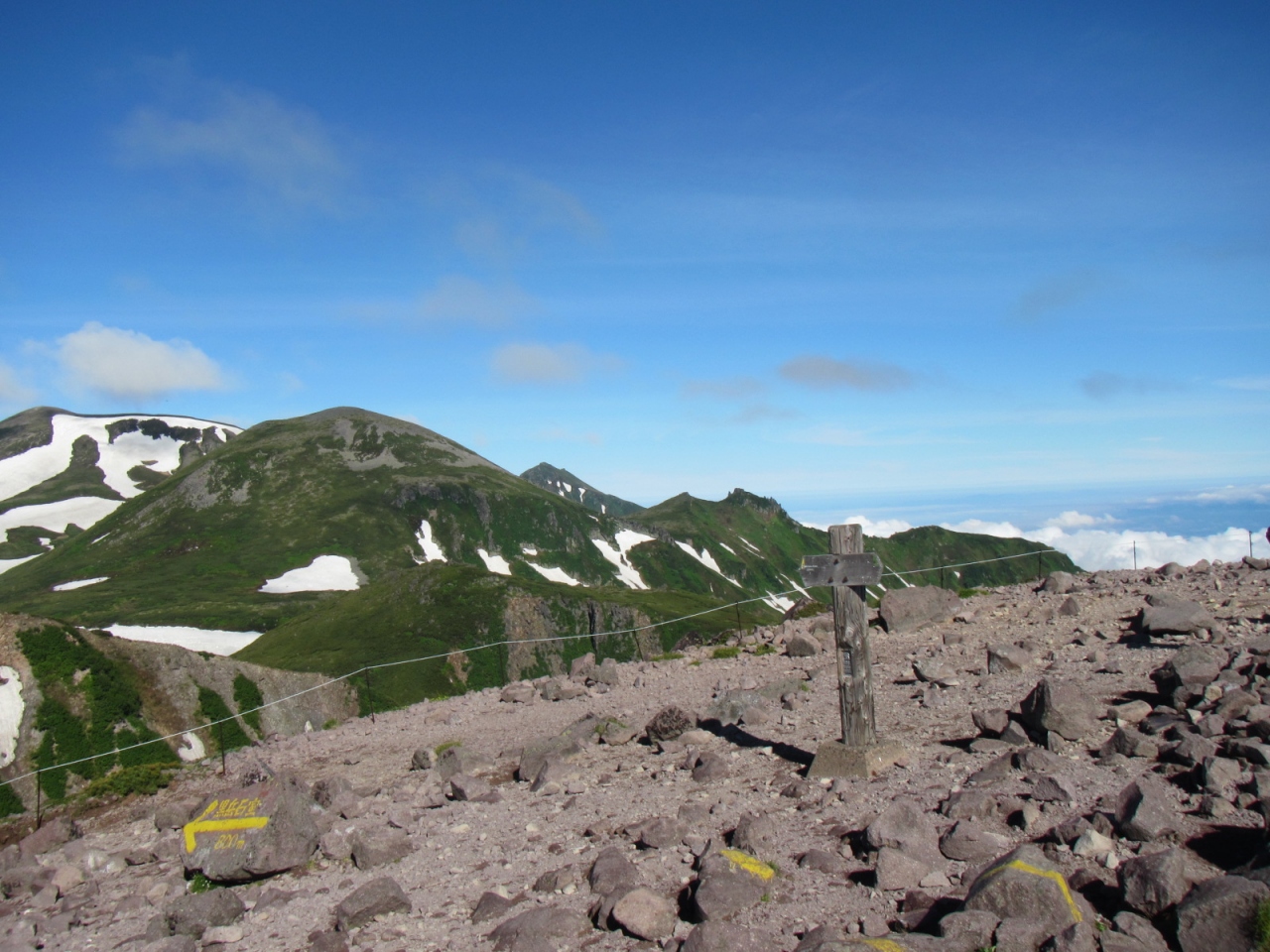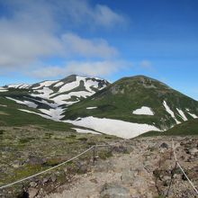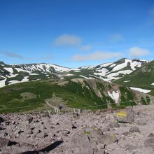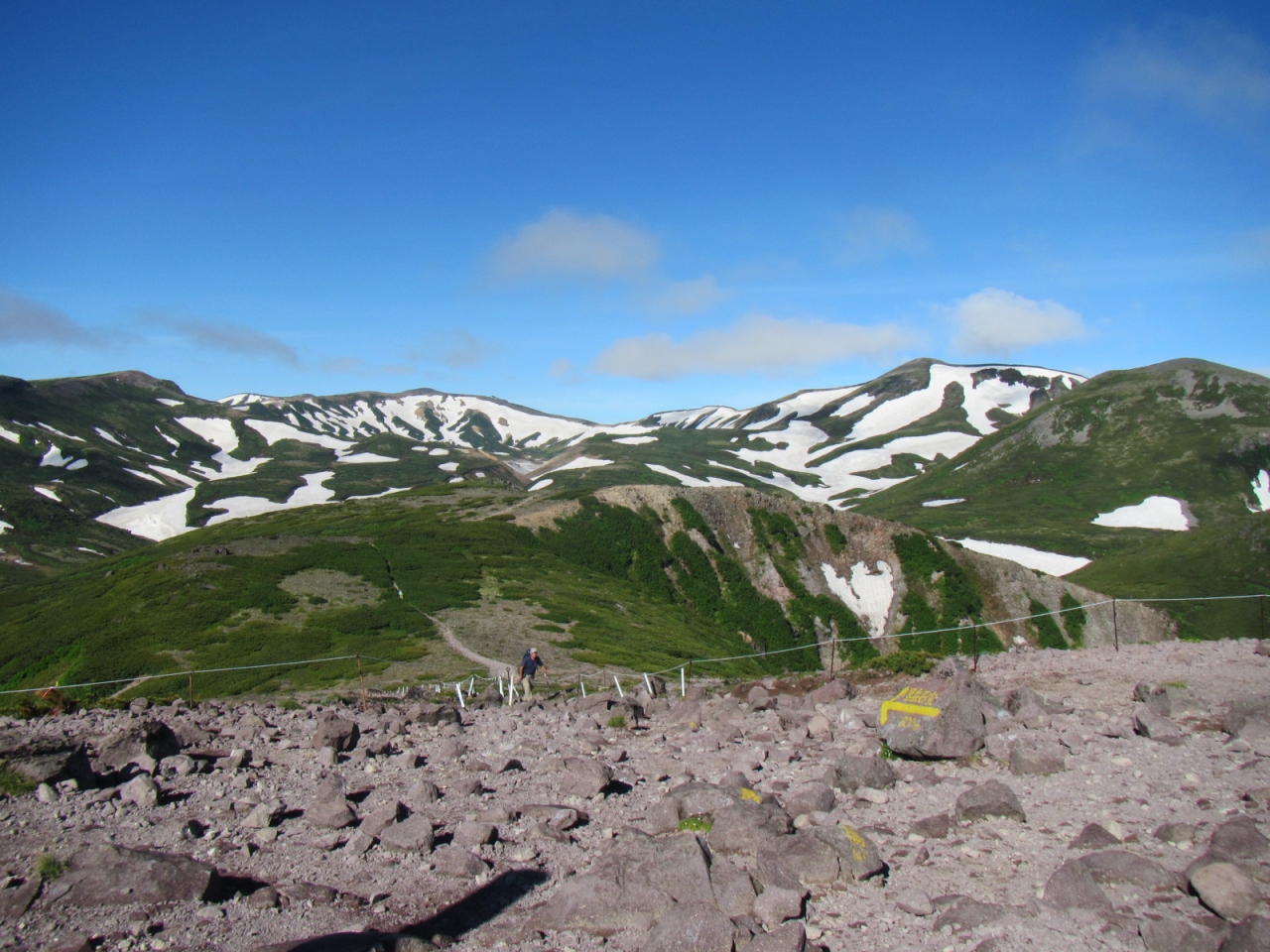 特に黒岳山頂からよく見ることができ、黒岳石室へ向かうと正面にそのダイナミックな姿を終始眺めることができます。