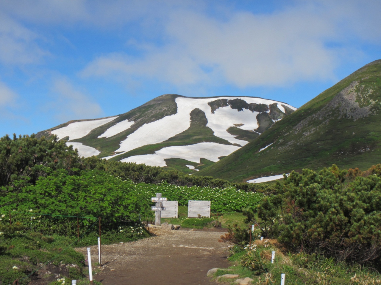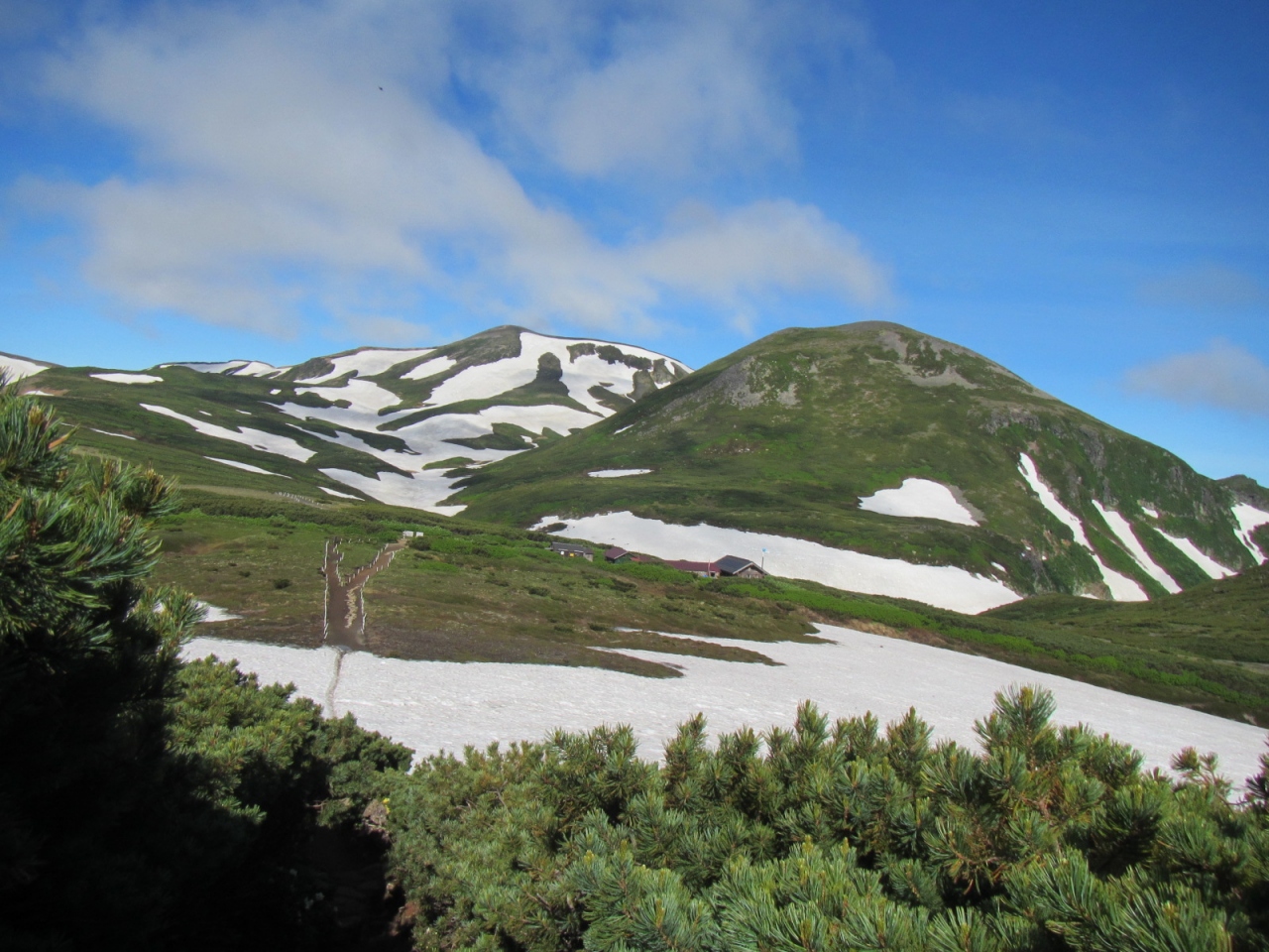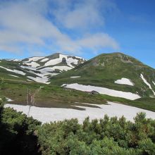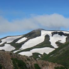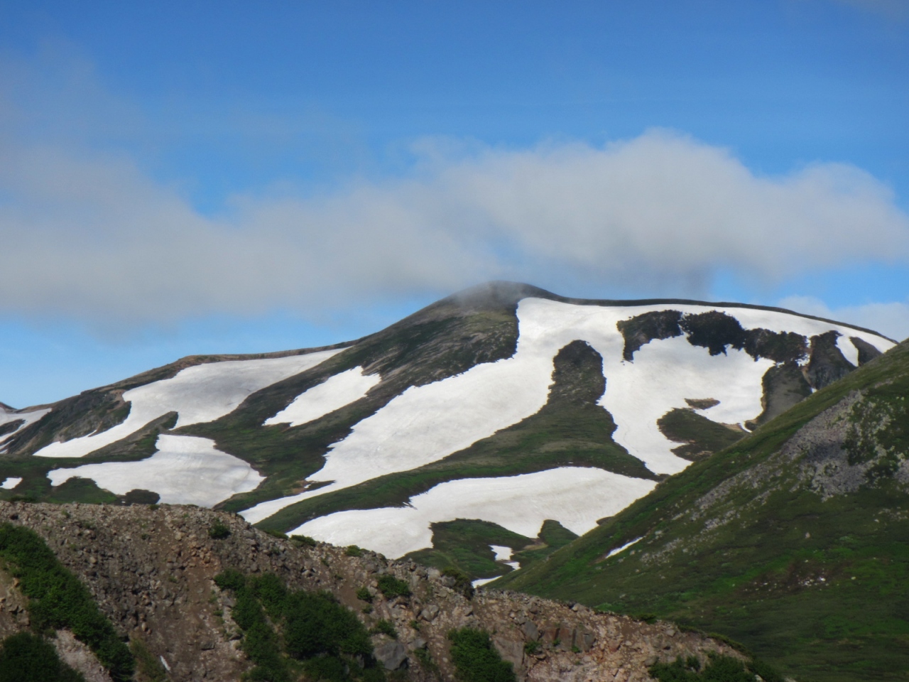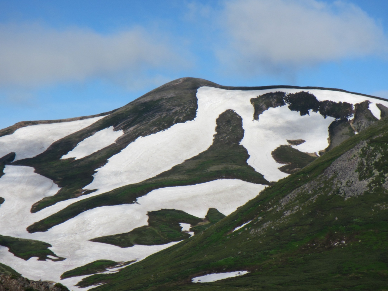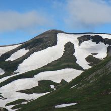 7月、山肌の残雪に白鳥の形をした雪渓を見ることができます。