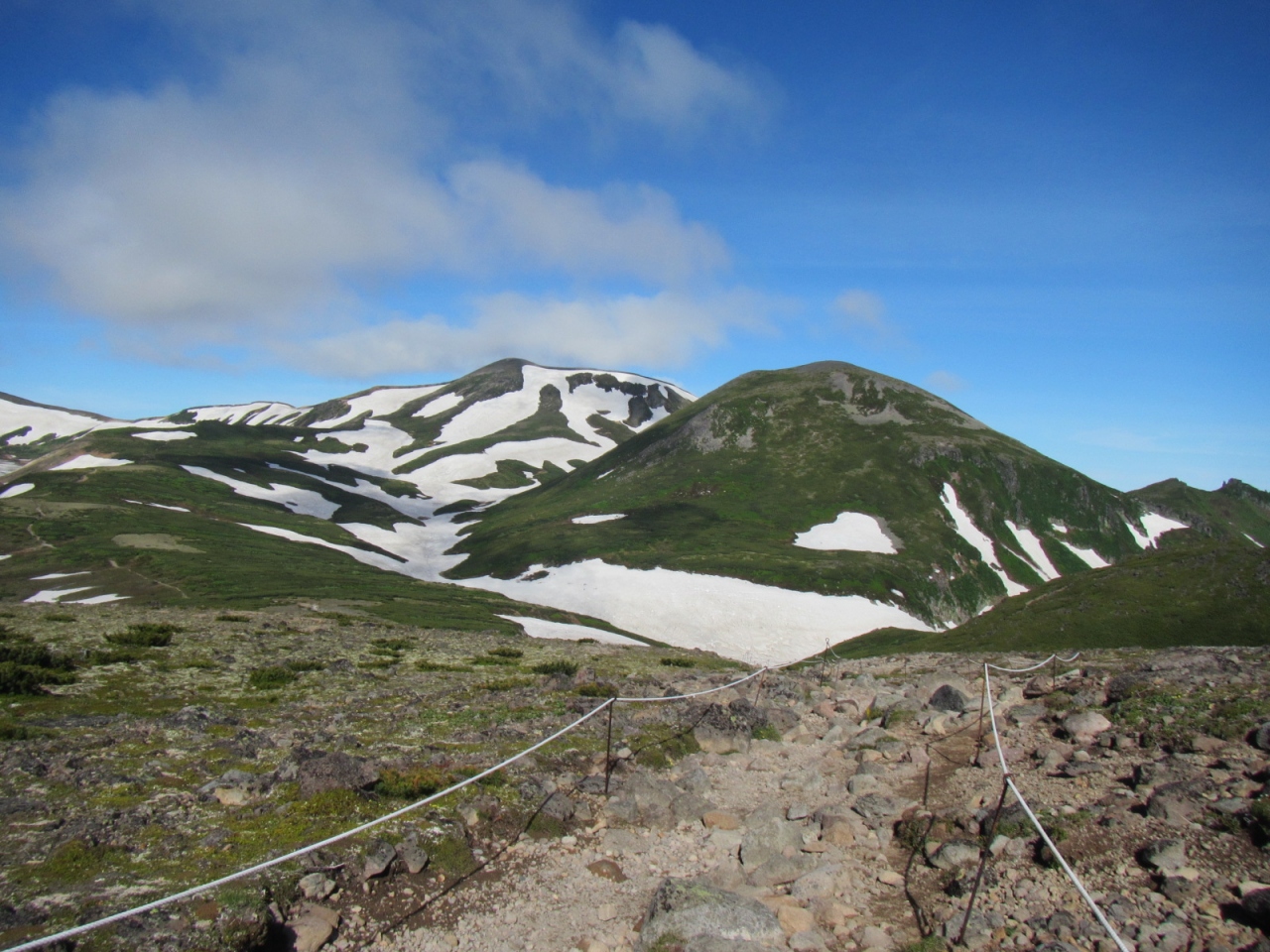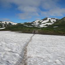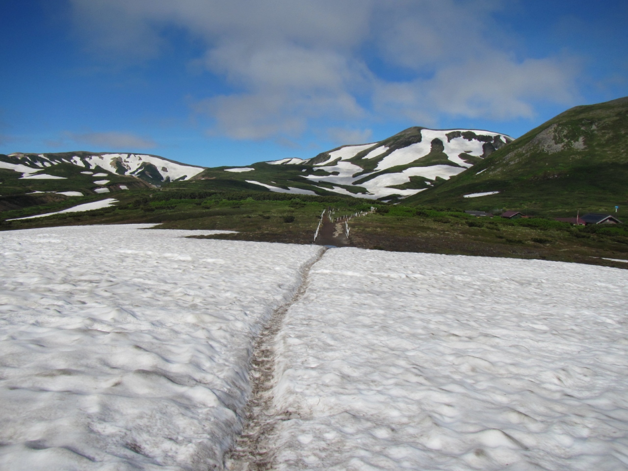 きれいな形状の雪形を見ることができましたが、登山道にも少々、雪渓が残っていました。