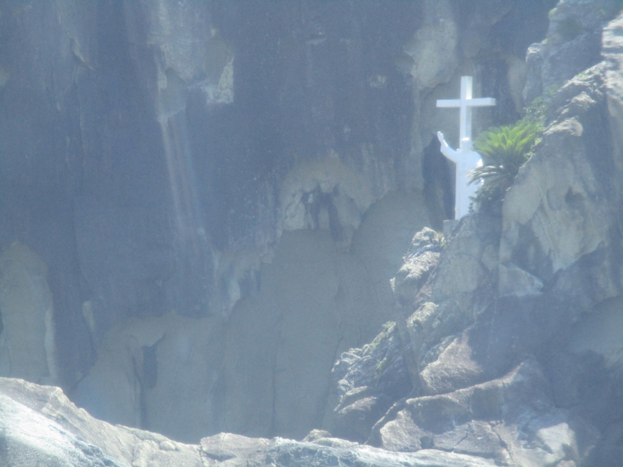 この洞窟は後にキリシタンワンドとよばれ、1967年に入口に十字架と3mの白いキリスト像が設けられたそうです。