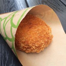 豚捨でコロッケをいただきました!ソースはお好みで置いてあるのでかけられます。小さいのでたくさん食べられそうでした♪