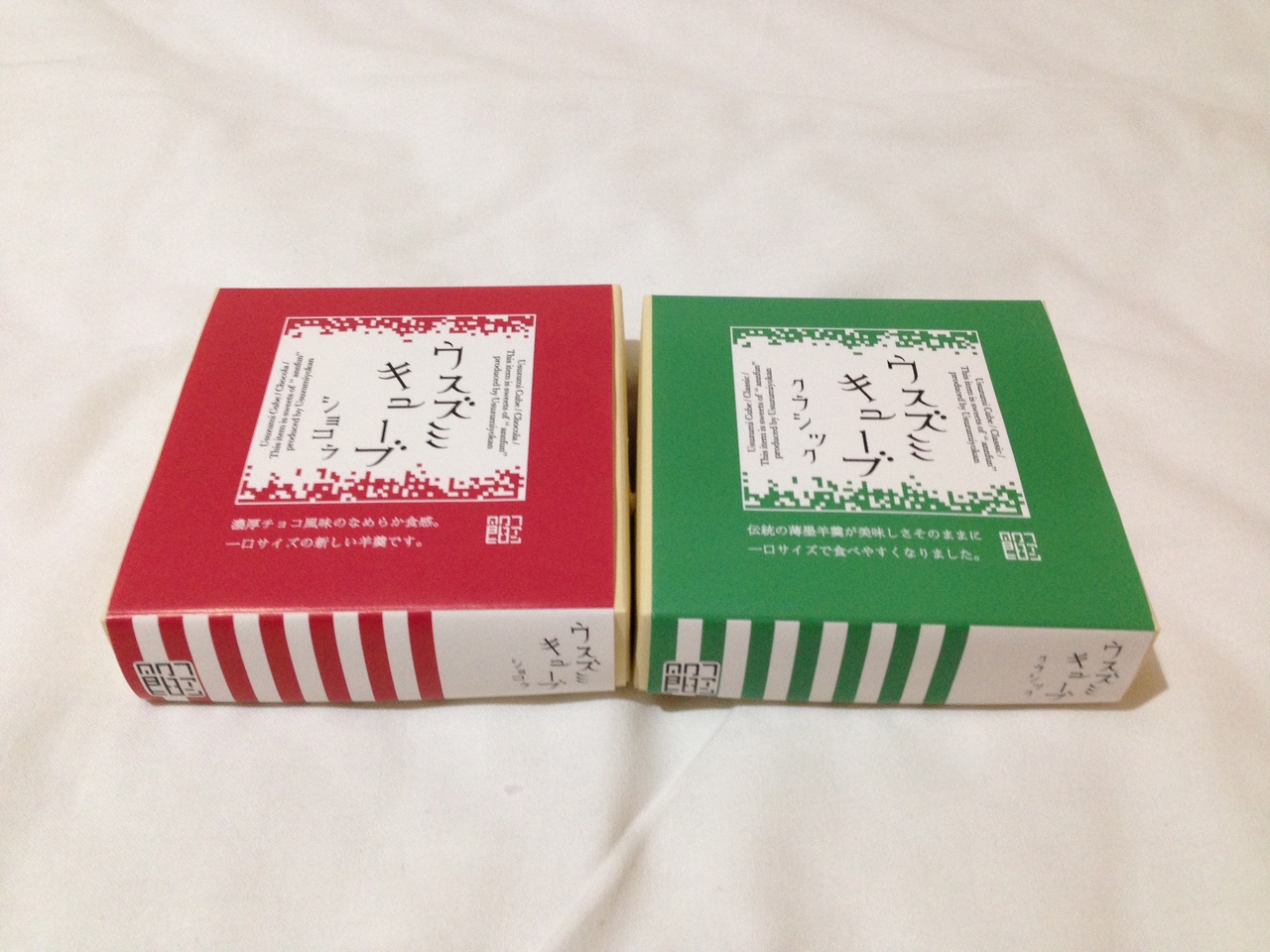 購入したのは松山の銘菓、薄墨羊羹を現代風にアレンジしたウスズミキューブ。その名の通り、キューブ状の一口羊羹です。チョコレート味はあんこ嫌いな人でも食べられるかも?