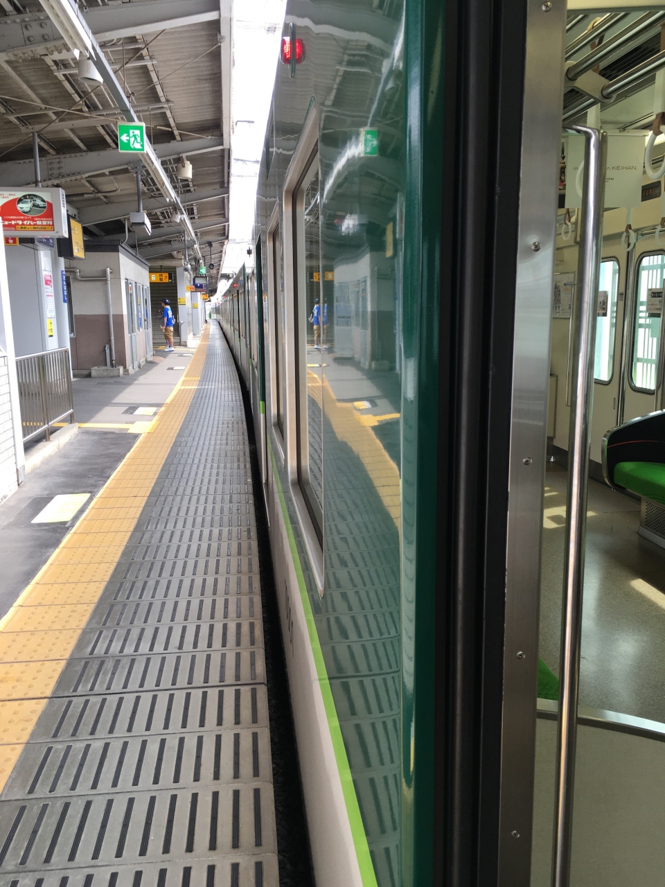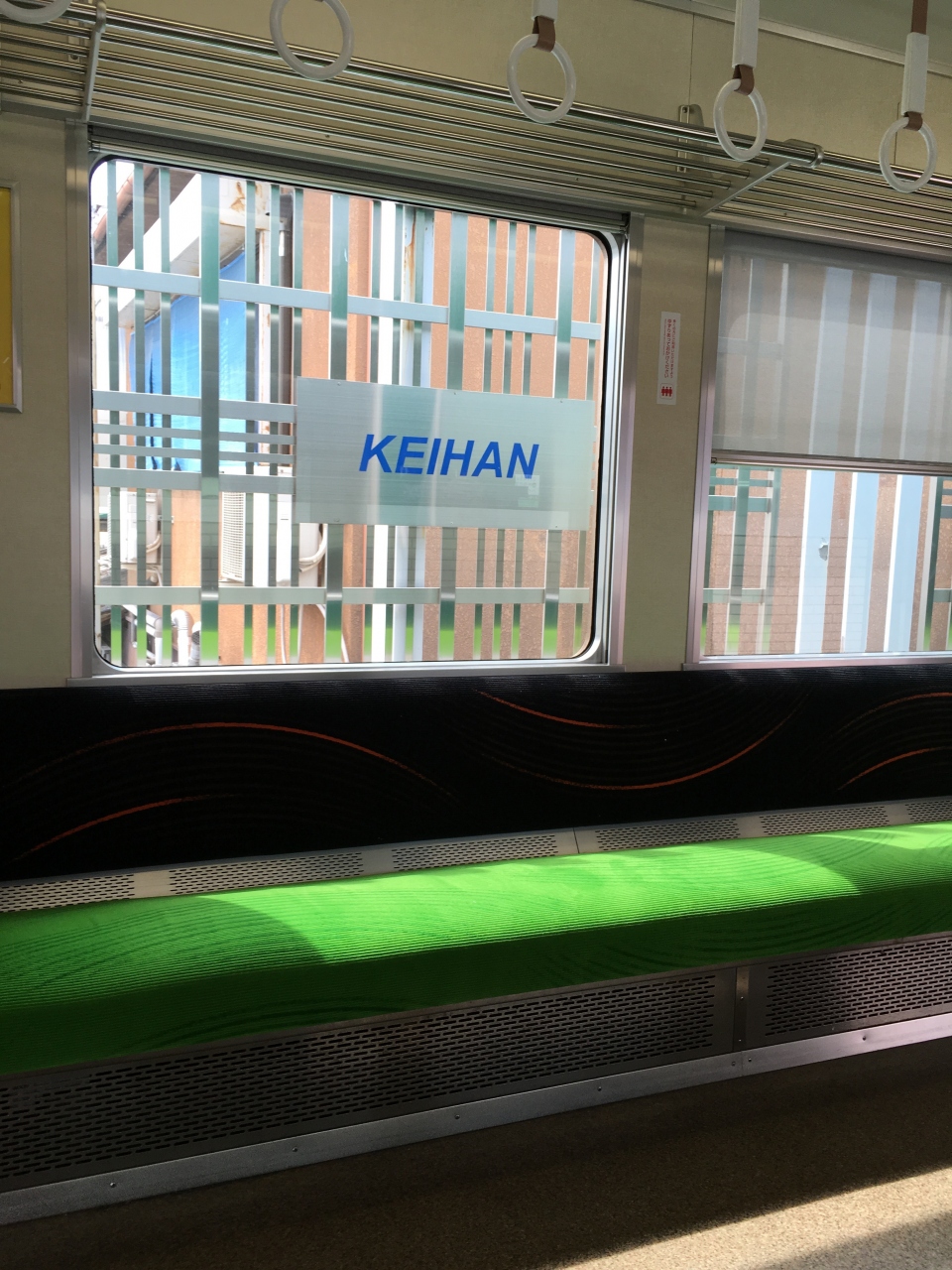 京都と大阪を結ぶ電車の一つ京阪本線。JRよりは遅いですが、運賃も安いし、大阪から伏見稲荷大社のある伏見区や東福寺や祇園のある東山区にダイレクトにいけるので利便性もいいです。成田山のお守りがどの車両にも必ずあるのがいいですね。