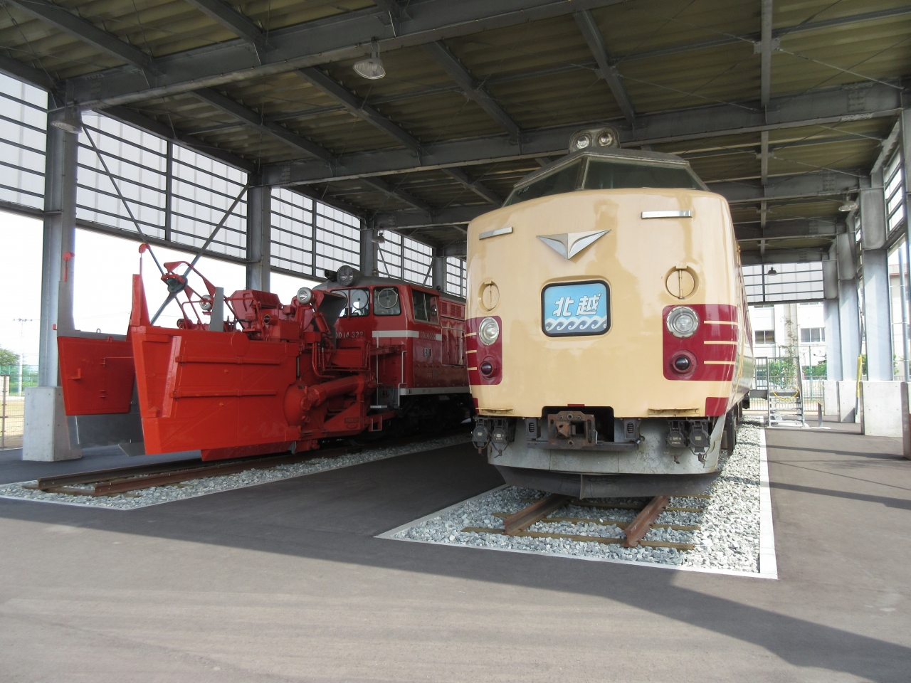 さらに屋外には、国鉄時代の特急形電車を代表する 485系特急形電車と、線路の上にある雪をかき寄せて取り込み、線路の外に吹き飛ばすロータリー式除雪用機関車( DD14形ディーゼル機関車)も展示されています。
