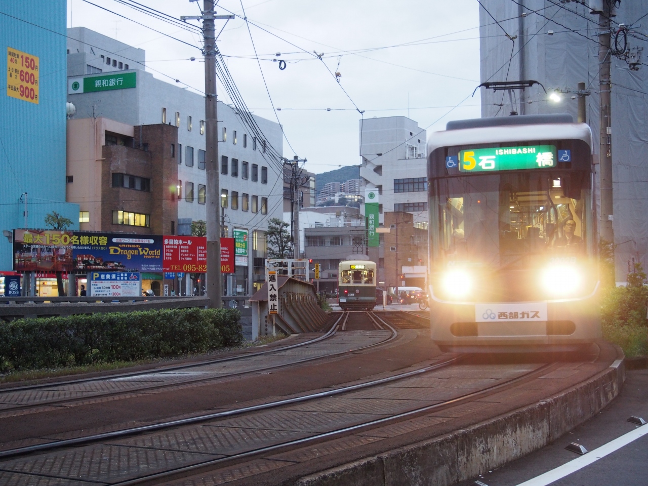 長崎市内の移動は市電が便利。一律120円、1日乗車券は500円です。1日乗車券は車内では購入できないようなので事前に購入しておく必要があります。購入可能場所はホームページに記載されています。同じホームに行き先の違う電車が来るので、乗車前に行き先確認をお忘れなく!