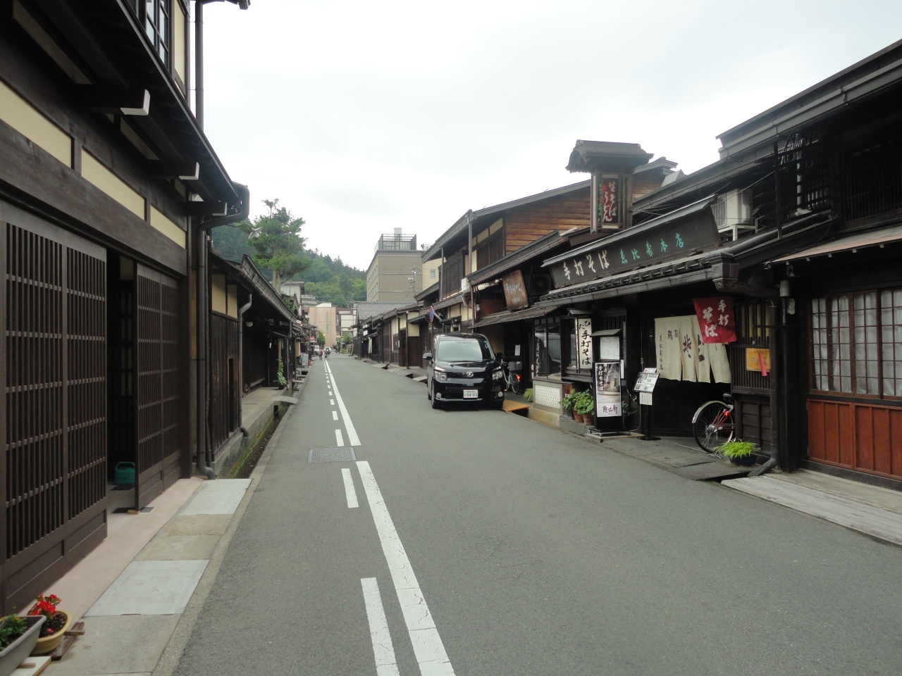 さんまち通りですが、車両通行禁止になっていて、観光客が多いのは上三之町だけです。ほかは店が少なく車も通っていて観光客も少ないです。あまり古い町並という感じはしませんでした。高山祭の屋台倉庫があって、飛騨高山だなと感じました。