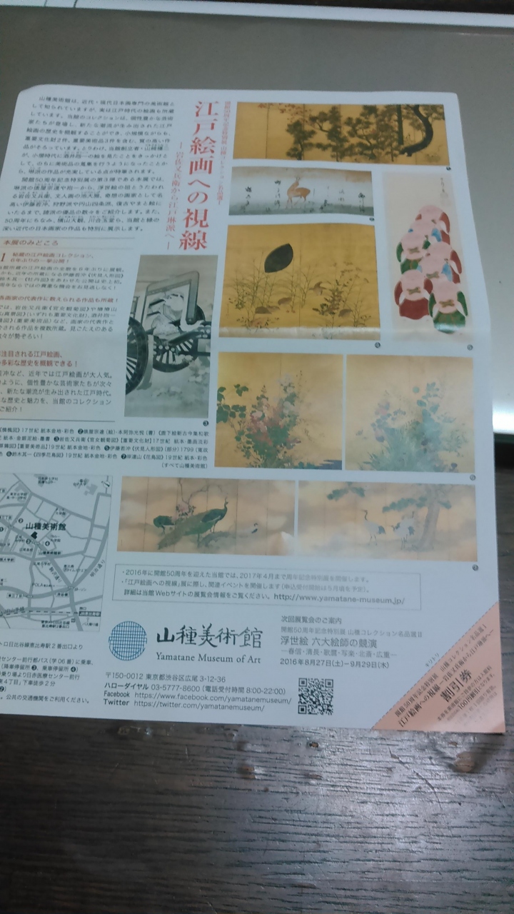 JR恵比寿駅からなだらかな坂道を約10分登ったビルにあります。1階は和食カフェ、美術館は地下1階です。「開館50周年記念特別展 山種コレクション名品選一 江戸絵画への視線~岩佐又兵衛から江戸琳派へ~」が催されています。ショップには女性が好きそうな、財布にも優しい物があります。