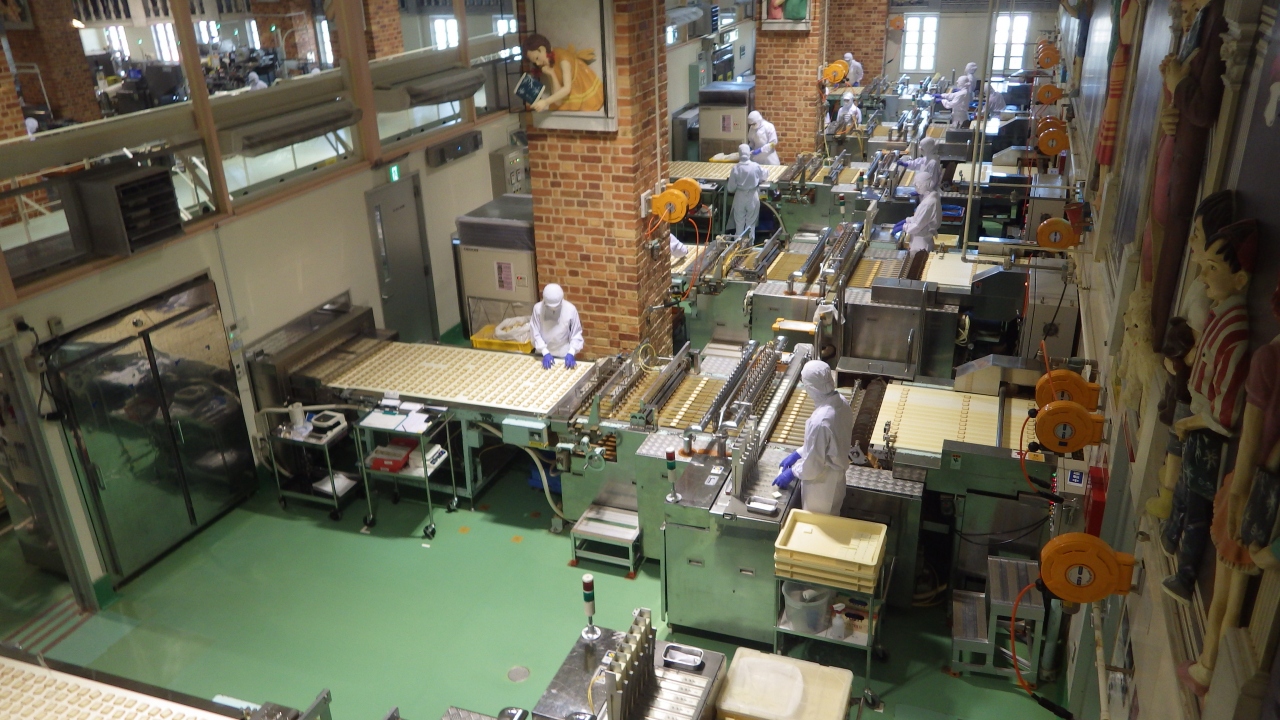 工場見学では、昔のチョコレート工場の様子をジオラマで見れたり、実際の製造過程をガラス越しで見れます。工場内の壁に色々なキャラクターがおり、遊び心が伺えます。