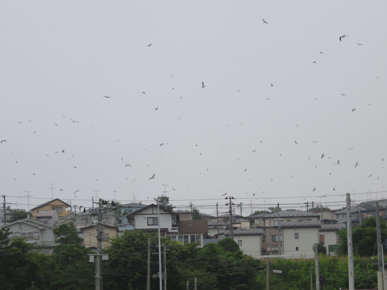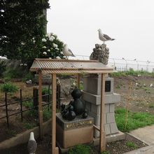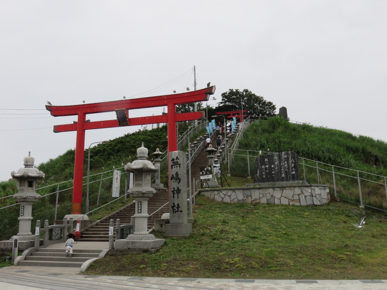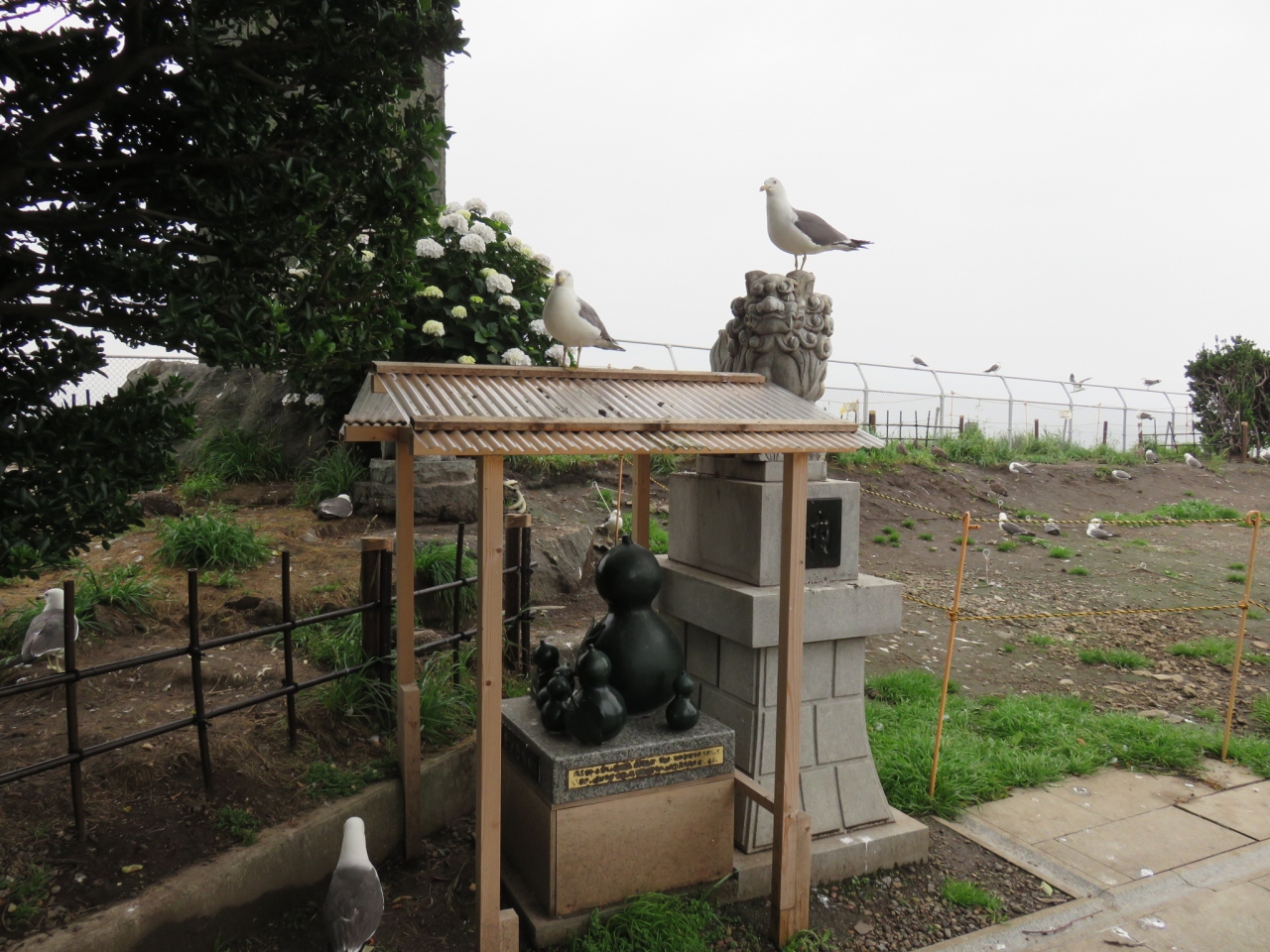 去年残念な事に神社は全焼しましたが、今は近くに仮の社務所と拝殿が設けられています。ウミネコが見られるのは2月~8月で6月に孵化したヒナが7月には巣立ち、8月には島を離れていくそうです。7月に訪れた時、丘の頂上にはウミネコの親鳥、雛鳥がいました。空にも沢山飛び回っていたのにも拘わらず運は落ちてこなかった。