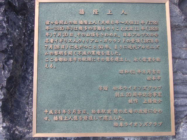 松本といえば、長野県内第二の都市であると共に、北アルプス登山の玄関口として知られている町ですので、登山目的で立ち寄られる方も多いかと思います。私も昔から登山の際には必ずここを訪れていますが、それはこの方が近代のアルピニズム的な登山が開始される前に、北アルプスの顔ともいえる槍ヶ岳に初登頂した開祖とされているからで、現在の百名山ブーム等も踏まえつつ、このもっと大変だった時代の北アルプスの登頂、そしてその後、他の人も登りやすいようにと、今でいう登山道の開削に尽力されたという歴史は、もっと現在の登山客は真摯に受け止めるべきではないかなと思います。何だか、意味もなくピークばかりを追いかける人や、トレイルラン等という、本来静寂を求めるべき筈の山域に、冒涜ともいえるイベントが開催されている現状には、私個人としては、少し疑問を持っています。少なくとも入山前には、この方にご挨拶して、登山というものの現代的意義を自分なりに考えて頂きたいと思います。