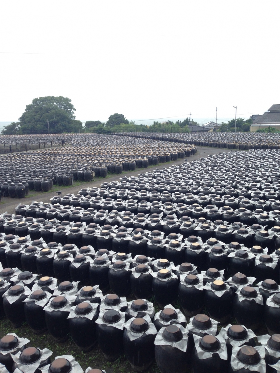 ズラッと並んだ黒酢作りの黒い壺を眺めながら食事ができるレストラン。