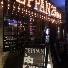 千日前で見つけた今っぽいお店です。夜しかやっていません。ニューヨークのような外観に心奪われ入ってみると鉄板料理のお店でした。いい香りがします。ワイルドおしゃれ系のお料理は女子会やコンパにぴったりですね。
