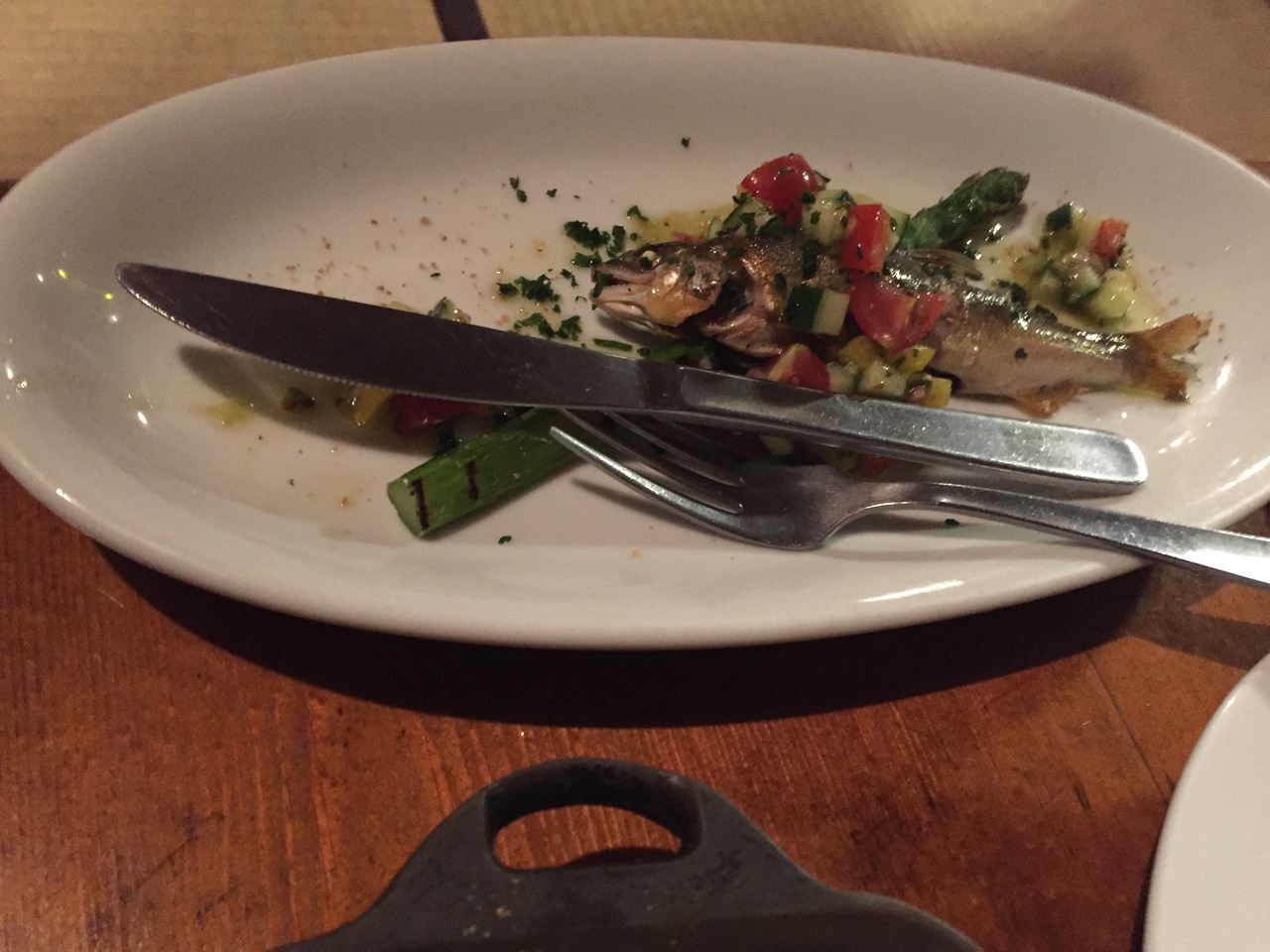 おススメ料理で天然鮎のコンフィ、アリゴのアリゴ等を注文。