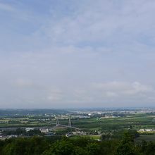 十勝川温泉の奥にそびえる山の中腹にある展望台。手前は音更の田園風景と十勝川、奥には帯広の市街地の風景が広がりなかなかのもの。川に架かる橋もアクセントになっている。徒歩だと結構な時間がかかるが、自動車等なら温泉からのアクセスは容易なので宿泊前後にぜひ訪れたい。