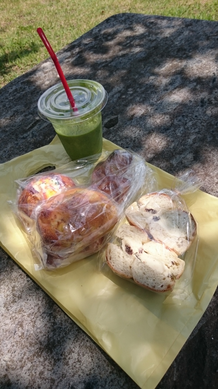 チーズクリームのベーグルと、そのほか数種類をお買い上げ。