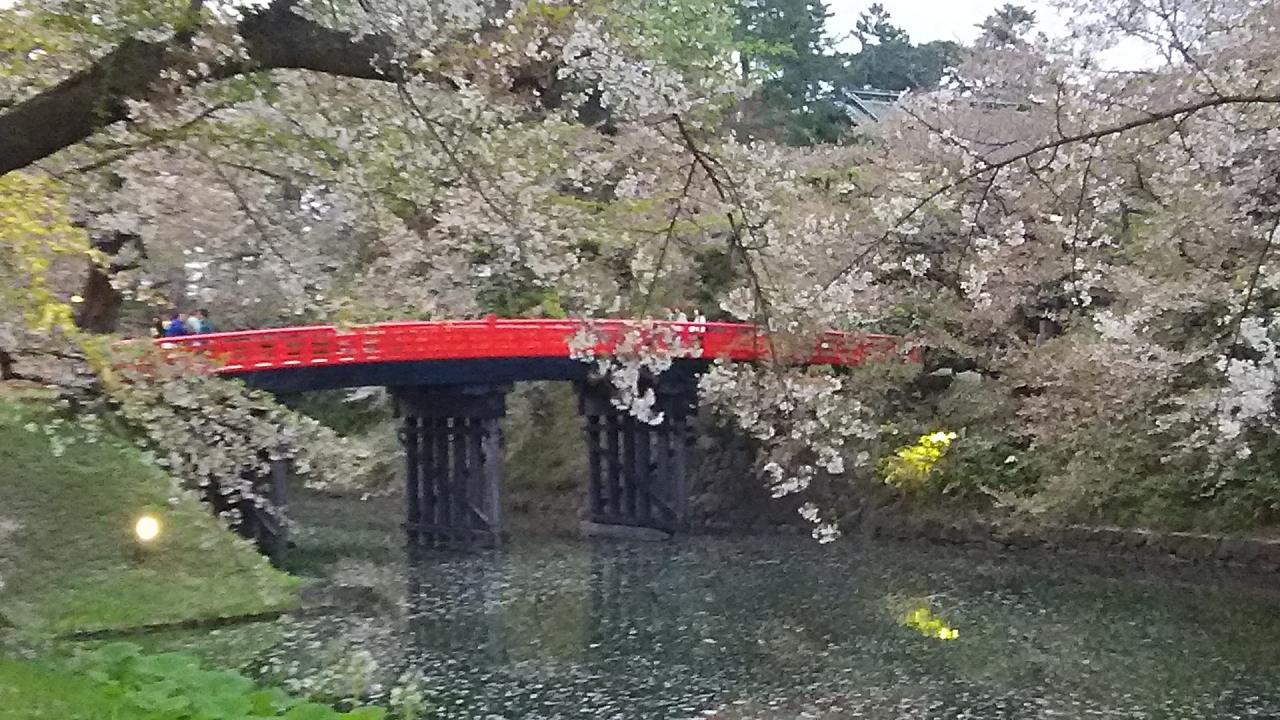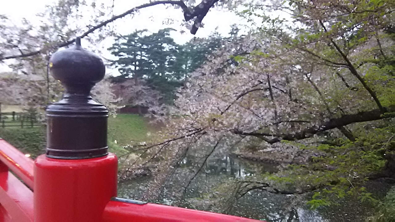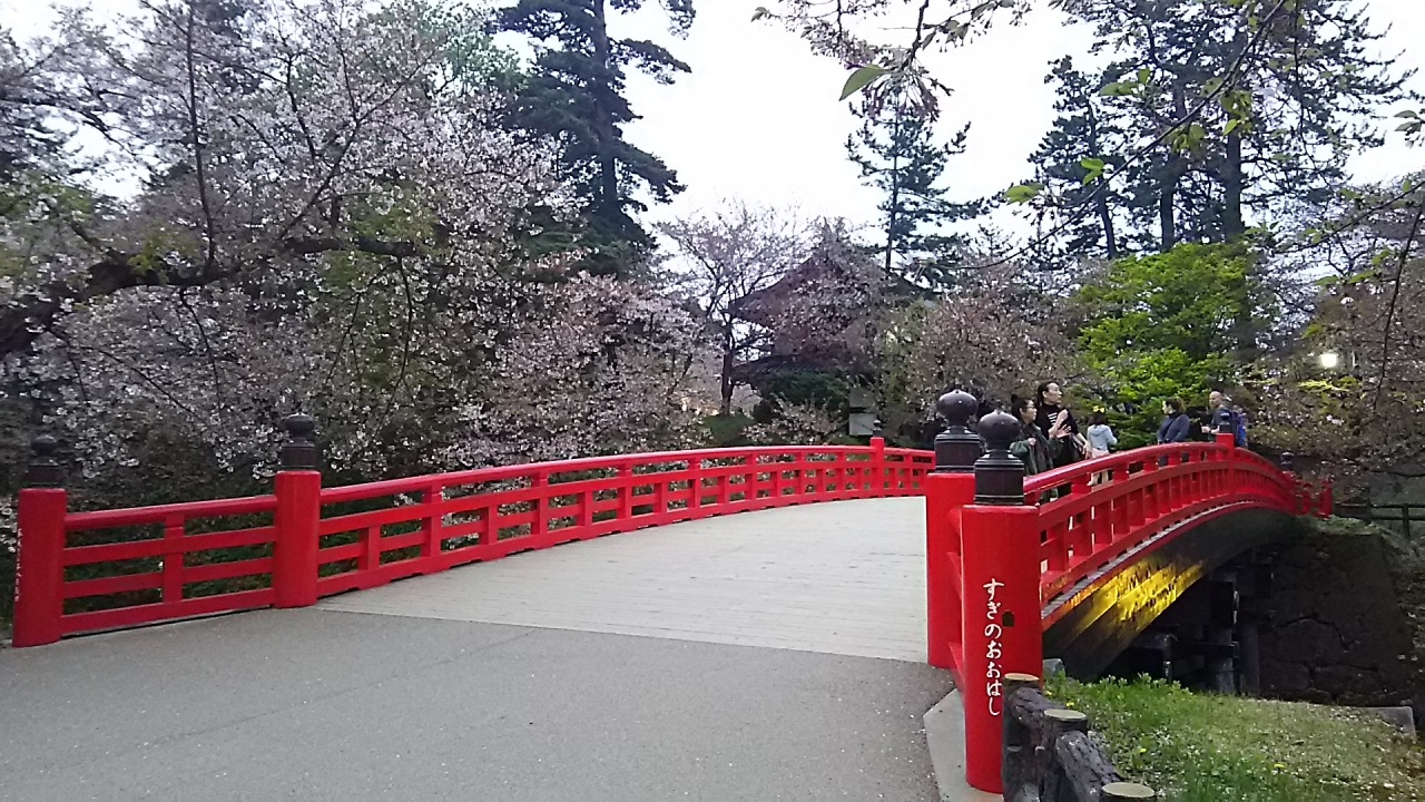 追手門から弘前公園に入り植物園を左に曲がると橋が見てきます