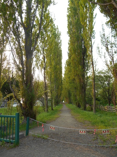 やっとついたポプラ並木、、、あれ、小さくてスカスカ。昔に見たのは枝の茂った大きな木が並び、巨大な印象があったのですが。イメージはすっかり崩れてしまいました。