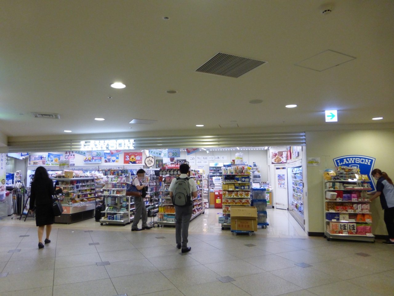 国内線の出発ロビー(2階)のローソンは日本航空側の出発口Cの近くに有ります。