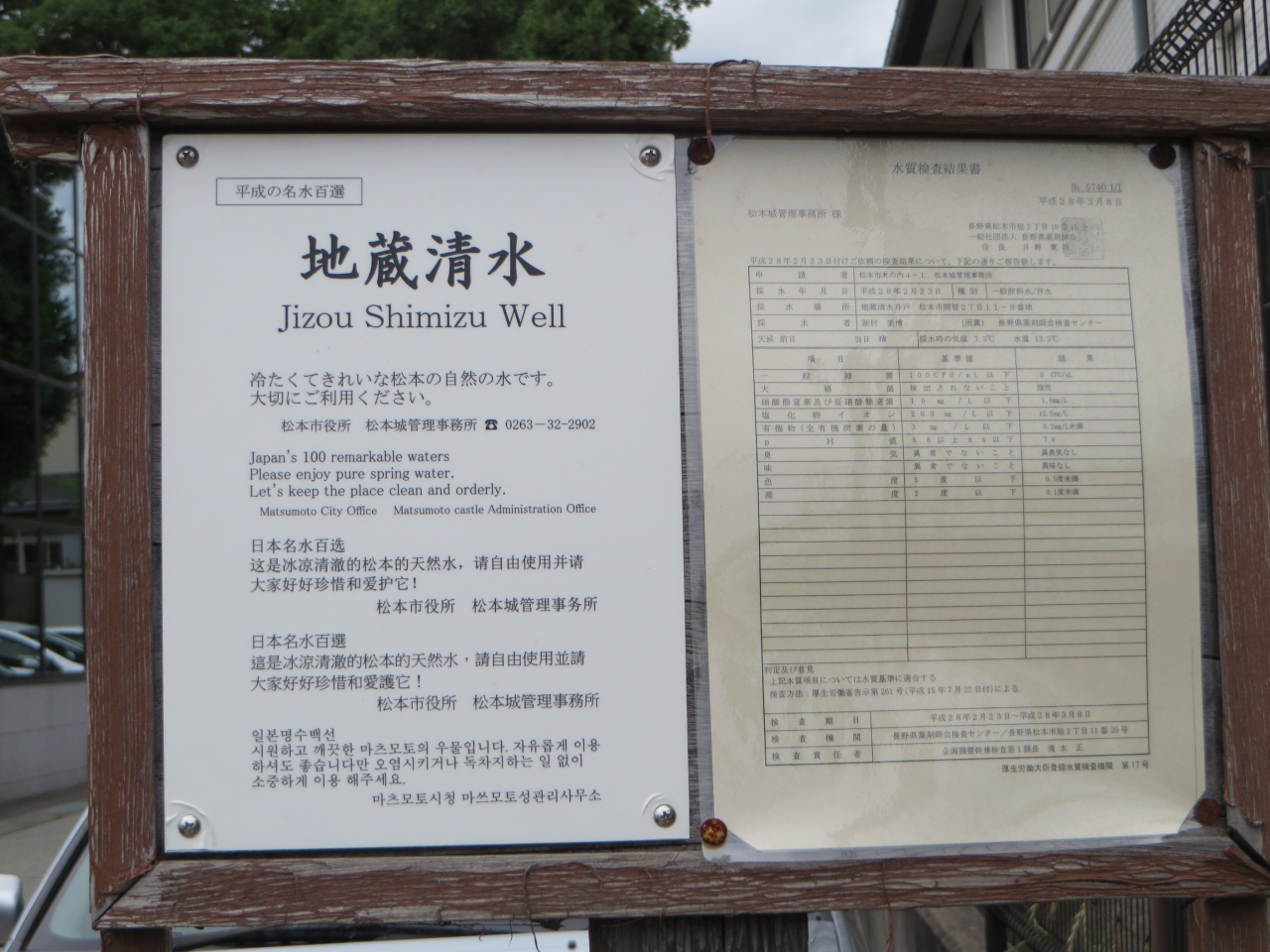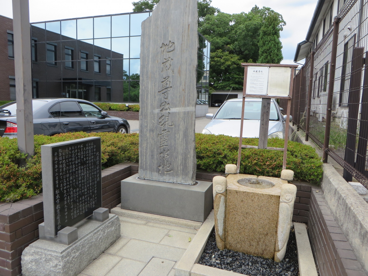 お城の北、教会のそばにありました。江戸時代城下町整備の際、井戸を掘らせたところ湧水と共に石の地蔵様が出たので地蔵清水と名付けたと由緒石碑にありました。また地蔵尊出現霊水地の石碑があり古い井戸のようです。水がこんこんと湧き出ていました。飲める水です。