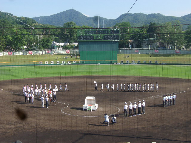 現在は、プロ野球の一軍公式戦が殆ど開催されなくなってしまった円山球場ですが、やはり近郊の山々に囲まれた風情や、外野席の松の様子等、円山らしい風景が存分に楽しめて、何度訪れても良い球場だなと感じます。今回は北海道の短い夏を満喫(?)するため、夏の高校野球予選の南北双方の大会の決勝を観戦しましたが、勿論円山は南北海道大会の会場となっています。決勝ですので、勿論、1試合しか見られませんが、緊張感も半端なく、試合終了後はインタビューを聞けたり、閉会式を見たりすることもできますので、なかなか楽しいです。しかもプロ野球だとお財布的になかなか立ち寄れないバックネット裏席などからも観戦できるのが良いですね。ただ、北北海道大会と比較すると、やはり大都市札幌ということもあって、観客の数も半端ないので、ゆっくりと観戦したいという方は、外野の芝生席に寝っ転がって、というのがお勧めです。また、南北海道大会は各ブロックを勝ち上がった16チームで、6日間かけて開催されます(2016年夏の場合)が、同じ円山でも南北海道大会の準々決勝位まではお客さんも少なくてゆっくりと観られますので、野球観戦そのものに興味があるという方は、こうした日程での訪問をお勧め致します。