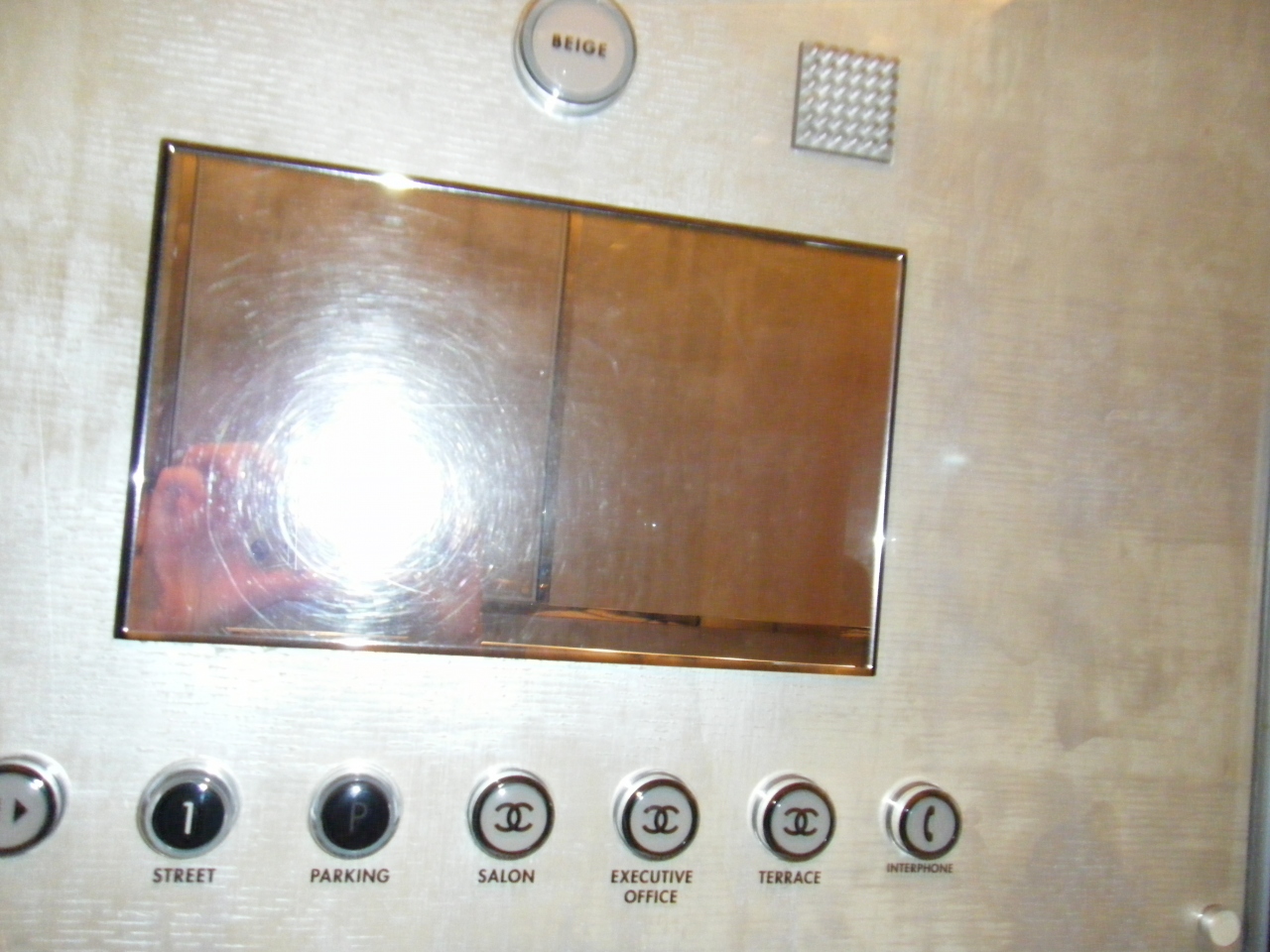 バッグ、靴、アパレル、化粧品に至るまでシャネルのすべてを見ることができます。上階にはイベントスペースもあります。レストランは別の入り口があって受付後、シャネルのボタンのエレベーターで上がります。トイレも男性用にはネクタイ、女性用にはマトラッセのバッグがかけてあるだけで、知らない人に通り過ぎてしまいます。